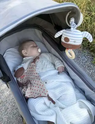 Et barnevognanheng formet som en søt hund fra Apple Park. Anhenget holder barnet opptatt både hjemme og under trilleturer. Trekk i tre-ringen for å få leketøyet til å vibrere og la barnet utforske forskjellige mønstre, materialer og lyder. Fest leketøyet til barnevognen med den myke snoren, så har barnet ditt underholdning under turen.