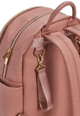 Jennie, en praktisk og stilig stelleveske i skinnimitasjon, fra Bellotte. Ryggsekken har en stilig design med gulldetaljer på glidelåsen, spenner og Bellottes logo foran. På baksiden er det spenner, slik at du enkelt kan feste den til barnevognen. Vesken har tre rom på utsiden, alle lukkes med glidelås. Den er også utstyrt med justerbare skulderstropper og et fleksibelt håndtak, som gjør det behagelig å bruke den lenge.En stellematte og barnevognhengere er inkludert.