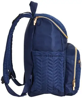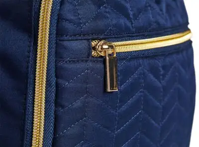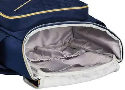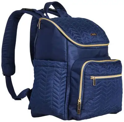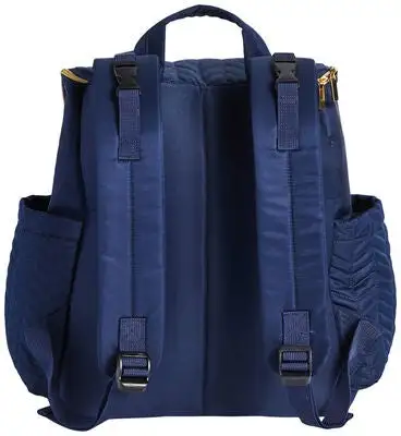 Luna, en fin og praktisk stelleveske i tekstil, fra Bellotte. Ryggsekken har en stilren design i lettvektsmateriale, med gulldetaljer på glidelåsen, spenner og Bellottes logo foran. På baksiden er det spenner, slik at du enkelt kan feste den på barnevognen. Vesken har tre rom på utsiden, alle lukkes med glidelås. Den er også utstyrt med justerbare skulderstropper og et praktisk håndtak, som gjør den behagelig å bruke lenge.