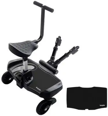 Bumprider Ståbrett med Sete er et universellt ståbrett laget for å passe alle barnevogner. Festsystemet har nesten uendelige mange instillingsmuligheter, med balansert fjæringsteknikk som gir en jevn og myk gang også på ujevnt underlag. Det praktiske ståbrettet passer nesten alle barnevogner.Bumprider har fått mye oppmerksomhet, og ble nominert som “Product of the year” av barn og baby-messen i Sverige. Den fikk også karakteren 4,5 av 5 på pushchairtrader.co.uk året 2011. – Hurtigfester, verktøy trenges ikke. Anbefalt alder: Fra ca. 2–5 år.Maksbelastning: 20 kg.
