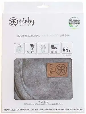 Flerfunksjonelt UV-teppe fra Cloby med to knapper. Bruk det over bæreselen, sett det på trillen eller bruk det som et håndkle. Perfekt for beskyttelse for solens UV-stråler. – Beskytter mot UV-stråler – Mål: B 73 x L 95 cm – 52 % bomull, 43 % bambusviskose, 5 % lycra