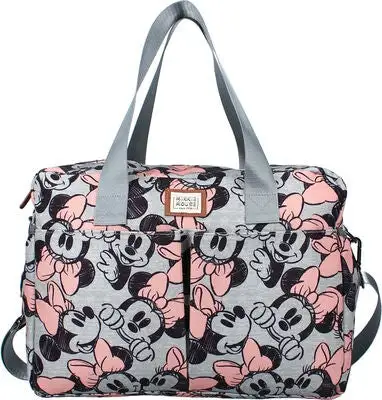 Elegant, beige Cuddles All Day stelleveske fra Disney Minni Mus, med et romslig rom med praktiske lommer. Den har lommer foran og et gripevennlig håndtak. Stellevesken har en stilren, tidløs design. Perfekt som en praktisk stelleveske, eller som en trendy hverdagsveske.