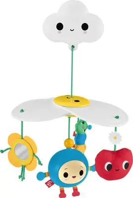 Flerfarget Happy World barnevognsleke fra FisherPrice til den lille med fire søte leker. Den har en klips for enkel montering på kalesjen. Den hjelper til med å berolige og trøste babyen din med søte blomstervenner. uroen har Happy World™-karakteren ”Hug Bug”-leketøy med en klokke inni, et mykt eple med jinglelyder, et krøllete blad og en søt blomst med et speil på den andre siden. – Anbefalt alder: fra nyfødt. – plast.