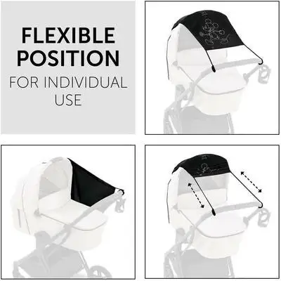 Universell solbeskyttelse fra Hauck med et Mikke Mus-motiv. Solskjermen har UPF 50+ og er veldig enkel å montere på barnevognen eller barnevognen ved hjelp av to stropper. Den kan trekkes forover eller bakover, noe som også gir enkel tilgang til den lille. Passer de fleste barnevogner på markedet.