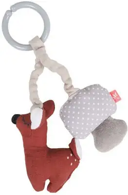 En fin vognleke fra Kikadu, som forestiller en sopp og et rådyr. Vognleken er laget av økologisk bomull, med en ring i plast. Den lille soppen og rådyret har en rangle inni, som rasler når de beveger seg. Denne miniuroen har en oppblåsbar plastring, slik at du enkelt kan henge den i barnevognen.