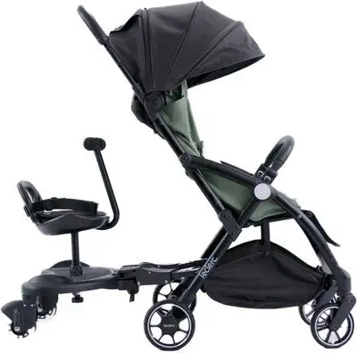 Smart Baby ståbrett fra Leclerc med et avtakbart sete med en polstret setepute og en sikkerhetssele. Perfekt når et eldre søsken vil være med på trilleturen. Enkel å ta på og av. – Anbefalt alder: fra nyfødt til 5 år