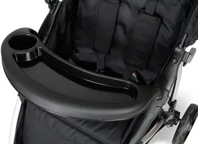 En brikke for mat og drikke til å feste på vognen istedenfor frontbøylen på sportsvognen Moweo Compact. Et selvsagt tilbehør for de litt lengre turene!