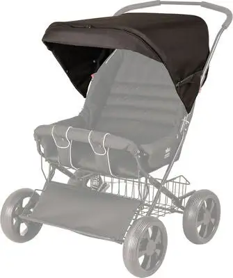 En stor kalesje til søskenvognen Twinsitty fra Nordic Crown. Kalesjen beskytter mot sol og vind og skaper et lunt miljø i vognen. Den kan brettes ut med en glidelås foran.