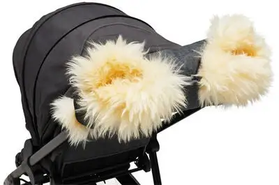 Håndvarmere i lammeskinn, fra Nordlys. Håndmuffene festes enkelt rundt vognens håndtak, ved hjelp av store, stilige knapper og trykknapper. Perfekt for kalde dager under høsten og vinteren!- Vannavstøtende (3000 mm vannsøyle).Passer med de fleste vognhåndtak.