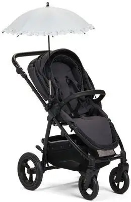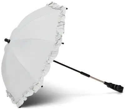 En fin parasoll med blonder fra Petite Chérie, som festes på barnevognen. Denne praktiske parasollen har UPF 50+, og festes på vognen for å beskytte barnet mot solens sterke stråler. Parasollen er laget av vannresistent tekstil, med en svart bakside som forsterker beskyttelsen.