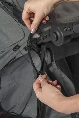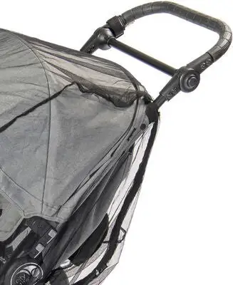 Svart myggnett for trille fra Tinkafu. Tinkafu® myggnetting holder veps og andre insekter borte fra barnet mens det sover eller ute på tur. Denne modellen er designet for sulkies der kalesjen er festet til håndtaket, f.eks. Thule, Babyjogger, Britax Motion 4 Plus, Bumbleride og Tfk. – 100 % nylon mesh
